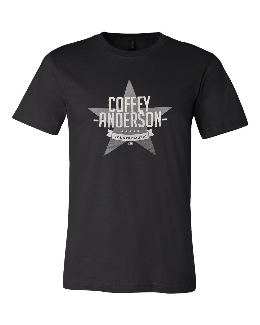 Get the shirt that started it all in our Black tee featuring a white Coffey Anderson logo with a grey star screen printed design on the front.